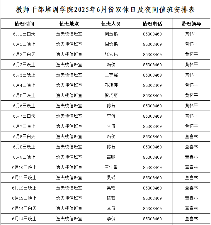 xvideos 2025年6月份双休日及夜间值班安排表