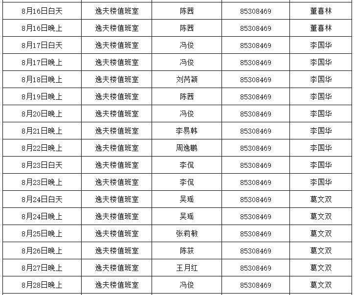 6.值班时间:上午:8:30—12:00 下午:14:30—17:30。