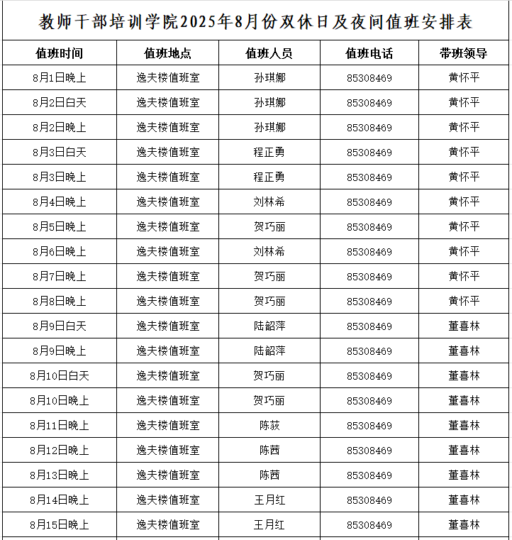 5.当值人员结束值班前需通过电话提醒下一班值班人员按时到岗并交接相关注意事项;