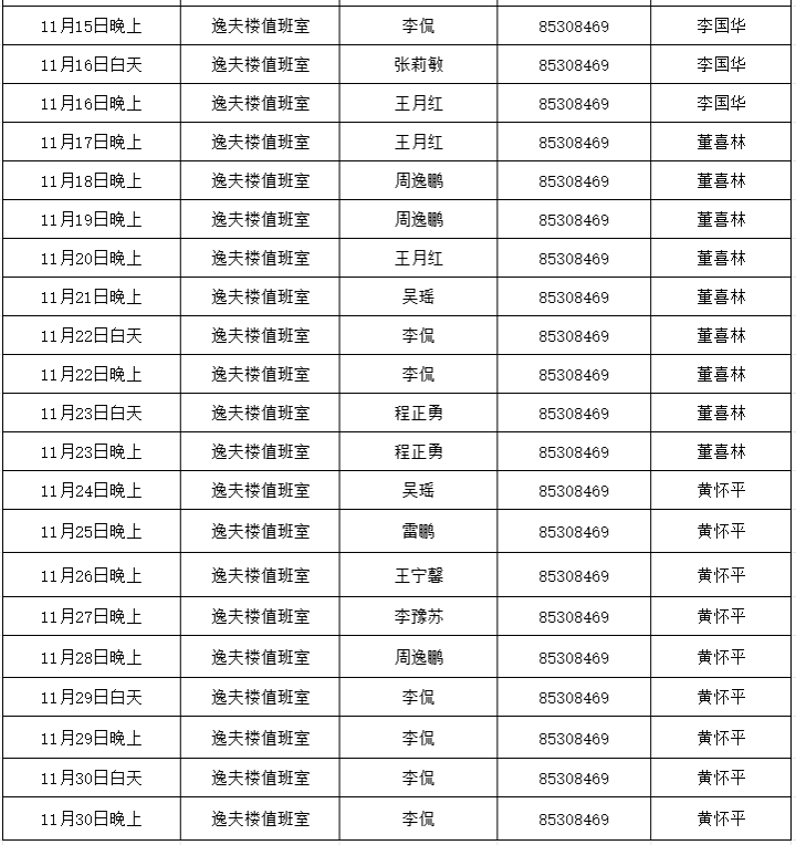 6.值班时间:上午:8:30—12:00 下午:14:30—17:30 晚上:18:30-21:00。