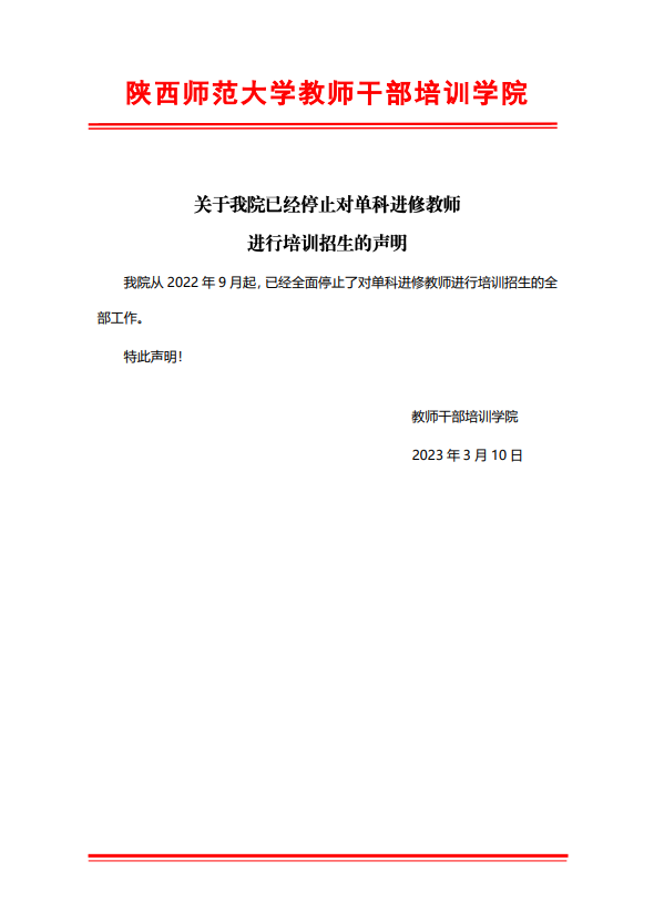 xvideos 关于已经停止对单科进修教师进行培训招生的声明
