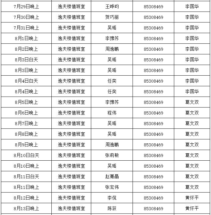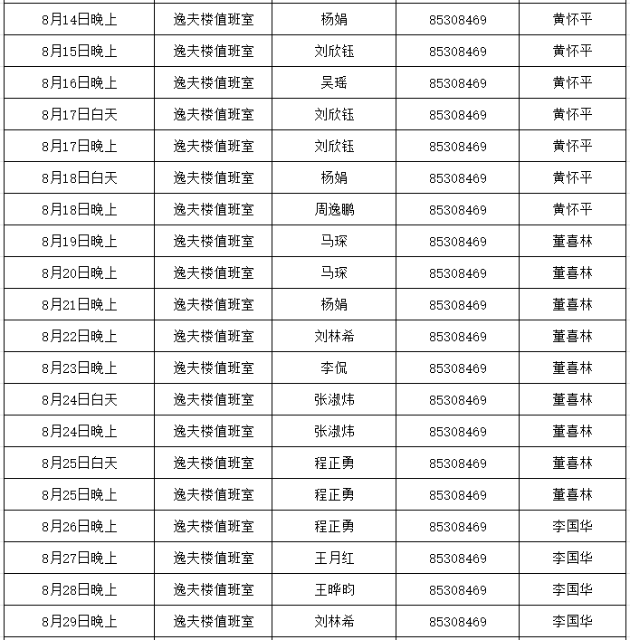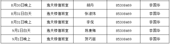 4.值班时间:上午:8:30—12:00 下午:14:30—17:30 晚上:17:30—21:30。