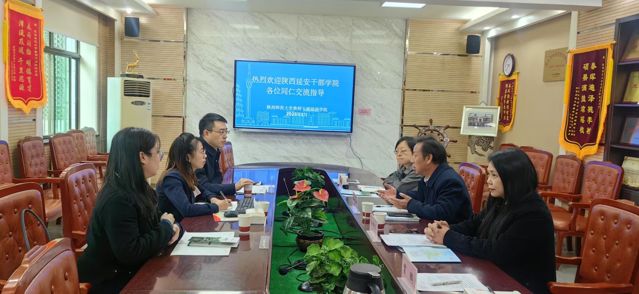 对陕西延安干部学院工作的支持,介绍了学院的师资力量、办学特色以及近年来在干部教育培训方面取得的成果,希望双方在已有工作的基础上,加强联系,持续在党员干部教育培训等方面开展积极合作。