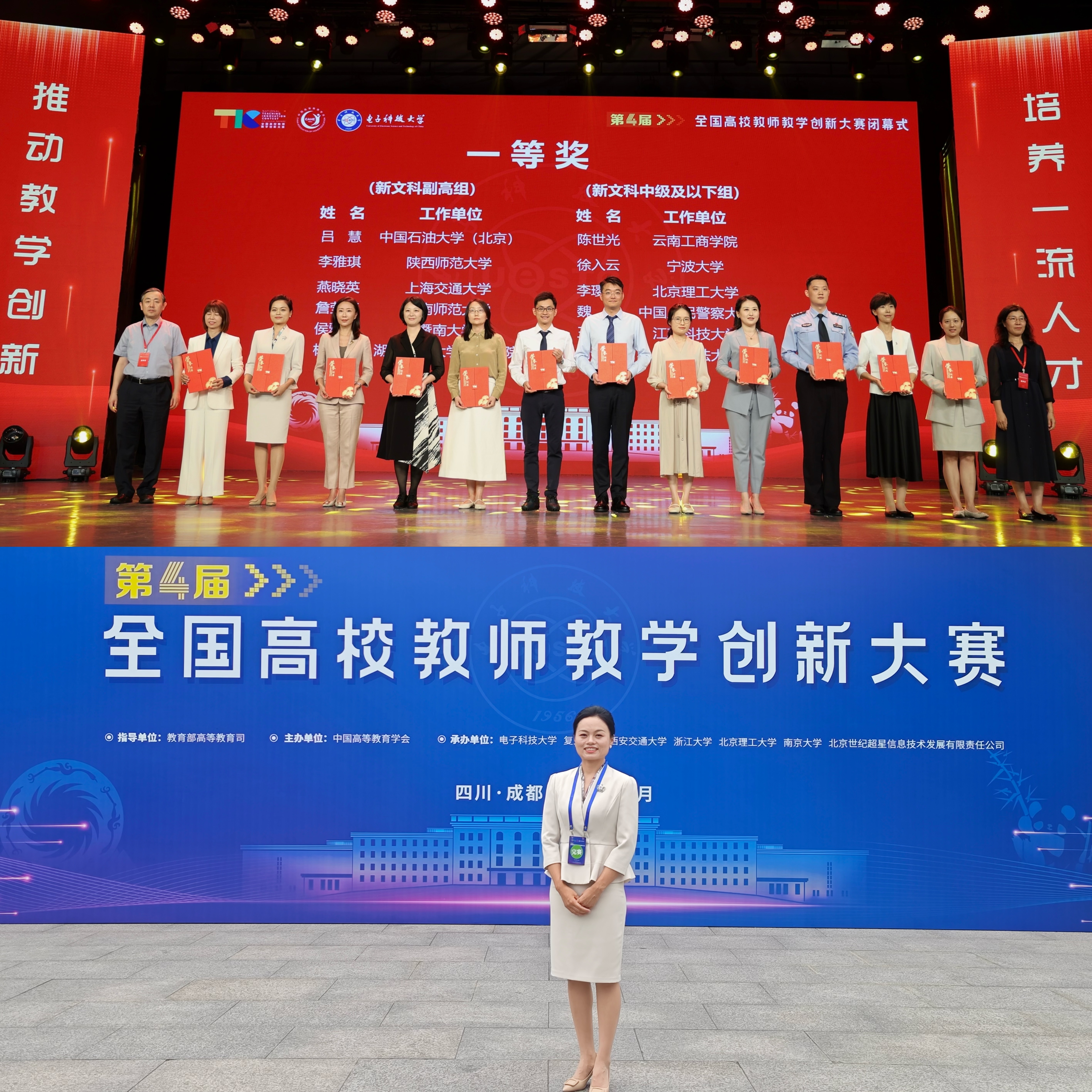文学院副教授李雅琪荣获全国高校教师教学创新大赛新文科赛道副高组一等奖,马克思主义学院青年教师孔晓菲荣获全国高校青年教师教学竞赛思想政治理论课专项组二等奖。