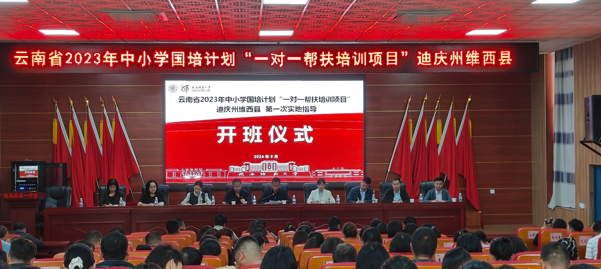 “一对一帮扶培训项目”(迪庆州维西县)第一次实地指导研修活动顺利进行。陕西省中小学6位专家,维西县教育体育局副局长马玉玺,县教师发展中心主任陈李祥以及近200名教师参加了开班仪式。开班仪式由陈李祥主持。