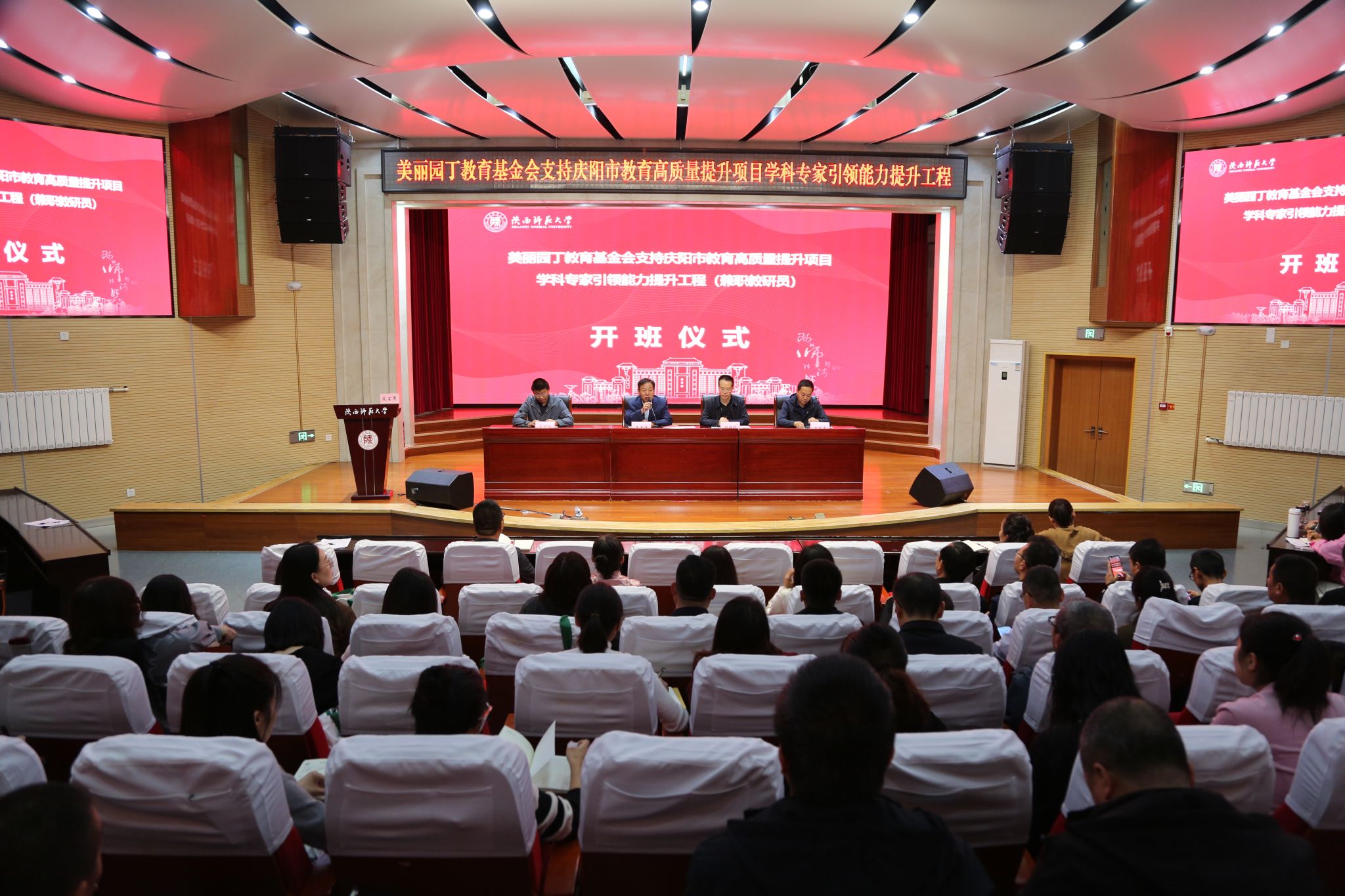 承担的美丽园丁教育基金会支持庆阳市教育高质量发展项目——“学科团队”庆阳市专兼职教研员(中学)培养项目在雁塔校区顺利开班,庆阳市教育局职教中心顾维科副主任、项目办刘春荣主任,xvideos